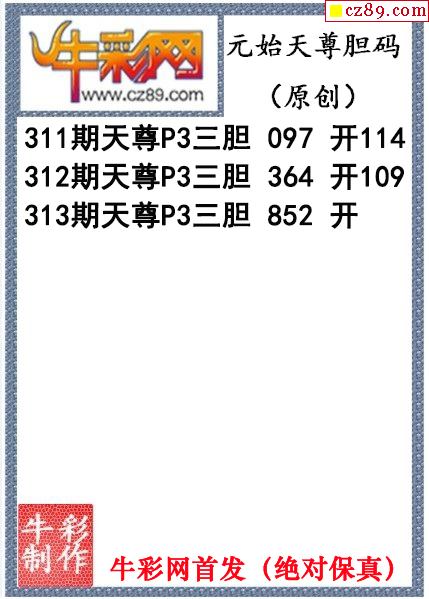 > 元始天尊胆码图313期体彩P3图谜(原创)